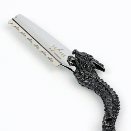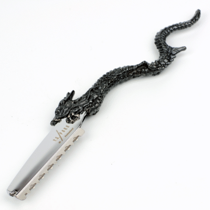 Κατασκευασμένο από χυτό μέταλλο υψηλής ποιότητας με αντικέ φινίρισμα, το ξυράφι ξεχωρίζει για το dragon-inspired σμιλευμένο σώμα, το οποίο προσφέρει εξαιρετική ισορροπία και σταθερό κράτημα. Ο εργονομικός σχεδιασμός του μειώνει την καταπόνηση του χεριού και επιτρέπει απόλυτο έλεγχο σε κάθε κίνηση, ακόμα και στις πιο απαιτητικές λεπτομέρειες.